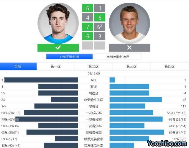 足球直播吧讯 北京时间6月2日凌晨,法国网球公开赛男单四分之一决赛继续进行。在菲利普-夏蒂埃球场的夜场对决当中,两位北欧球员鲁德和鲁内相遇。经过了四盘比赛的激战,8号种子鲁德以6-1/4-6/7-6(2)/6-3战胜了小将鲁内,拿到了男单四强的最后一个名额。半决赛鲁德将会面对老将西里奇的挑战,后者五盘淘汰了卢布列夫。