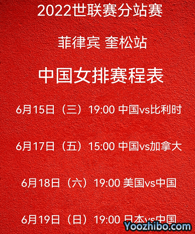 6月15日19:00,中国女排VS比利时;