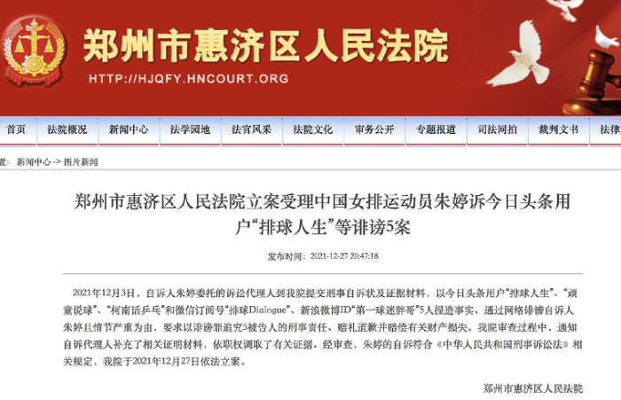 足球直播吧12月28日讯 近日中国女排队长朱婷维权的事情吸引了很多人的关注,有5名网友、自媒体在针对进行造谣。其实朱婷在8月11日就报警了,到了12月27日,朱婷的报警已经正式被立案受理,希望这些造谣者可以承担刑事责任、赔礼道歉并赔偿有关财产损失。这件事情一出,不少人表示朱婷的做法是对的,面对这些无中生有的造谣者,就是需要拿起法律的武器来维权。