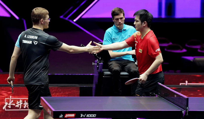 足球直播吧讯04月22日澳门冠军赛樊振东在冲击四强的道路上折戟,职业生涯首度面对法国天才小将艾利克斯-勒布伦,最终樊振东2-3败北,爆出本届赛事的第一冷门。樊振东出局是很遗憾的,决胜局挽救一个赛点之后追至9-10,随后樊振东的发球轮占据优势,结果对手幸运的擦边球得分,直接把世界排名第一的樊振东淘汰出局,樊振东也就无缘四强,没有能够和马龙会师半决赛。