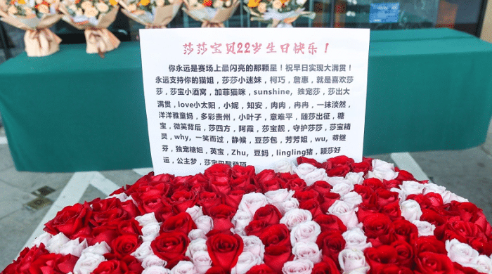 1104朵玫瑰!粉丝为孙颖莎庆生,鲜花气球应援,莎莎转达谢意