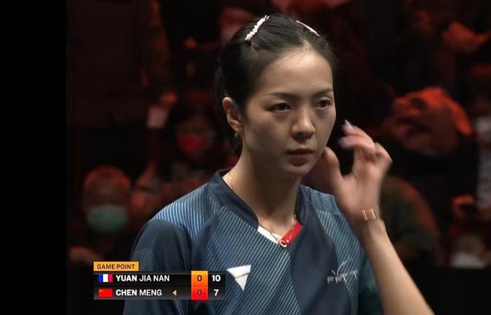 再次对阵上袁嘉楠,这是陈梦证明自己的机会,不过在比赛开局之后,陈梦显然对于袁嘉楠还是心有余悸,特别是陈梦在自己发球局的表现,在第一局陈梦发了10个球,丢了7分,袁嘉楠的8次发球,其中有两次让陈梦直接吃发球得分,最终陈梦也是以7:11输掉了第一局。