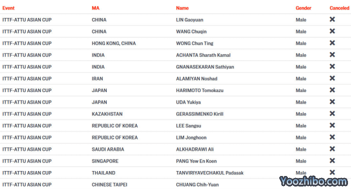这样国乒参加亚洲杯的名单是:王楚钦、林高远、王艺迪和陈幸同,同时截止到10月26日的亚洲杯报名情况: