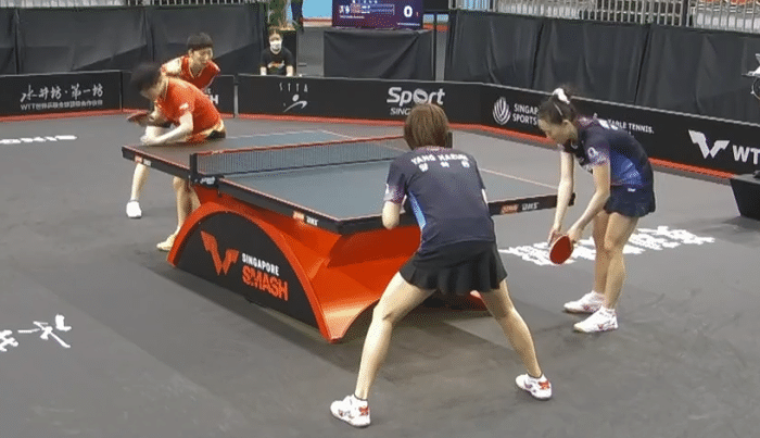 接下来进行的一场比赛是女双的比赛王曼昱 /孙颖莎对阵韩国组合田志希/梁夏银,本届赛事孙颖莎的任务也是比较的重,她分别参加了女单的比赛,混双的比赛,女双的比赛,此面的赛事孙颖莎发挥十分不错,加上对手的实力相对不是很强,她皆是取得了胜利,她与王曼昱搭档的女双组合也是夺冠大热门,女双组合两人排名世界第一。