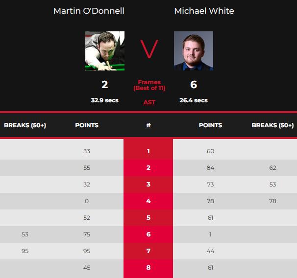 【赛事名称】: 2022世锦赛资格赛第2轮 马丁-奥唐奈vs迈克尔-怀特 全场录像回放
