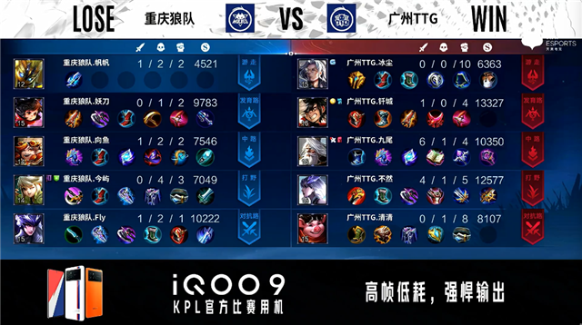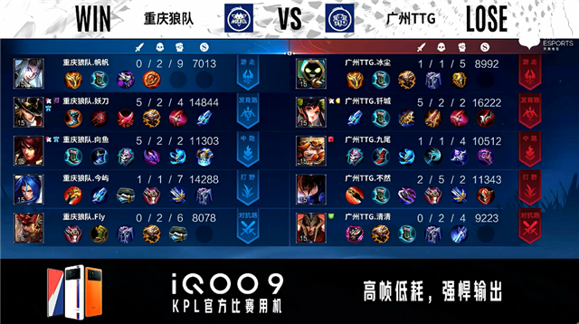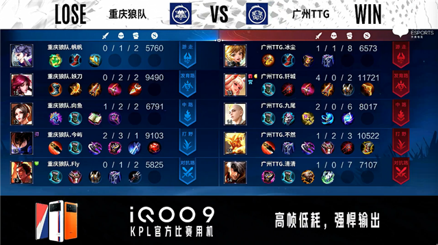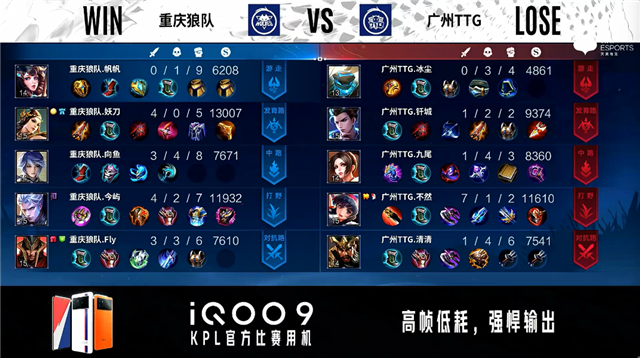 重庆狼队选用:廉颇、橘右京、周瑜、马可波罗、东皇太一