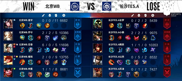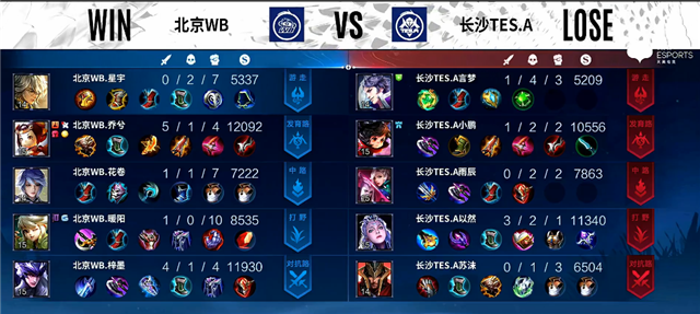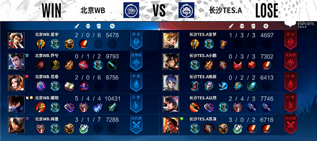 足球直播吧讯 北京时间4月13日2022年KPL春季赛常规赛第三轮第三周第一日第一场,由长沙TES.A对阵北京WB,以下是本场比赛快讯: