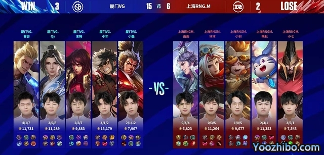 足球直播吧讯 北京时间03月15日,KPL春季赛第二轮第二周首日第一场比赛由B组战队厦门VG和上海RNG.M带来,这场比赛是厦门VG在第二轮的首战,由于他们第一轮遭到了五连败,所以第二轮他们首发人员进行了很大的调整(换下背影、Qy、小磊,换上无上、季节、十三),最终,厦门VG以3-2的战绩惊险击败上海RNG.M。