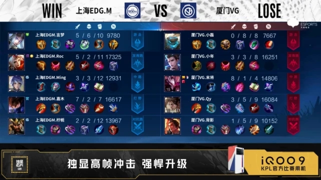 足球直播吧讯 北京时间7月15日2022年KPL夏季赛常规赛第二轮第三周第三日第一场,由厦门VG对阵上海EDG.M,以下是本场比赛快讯:
