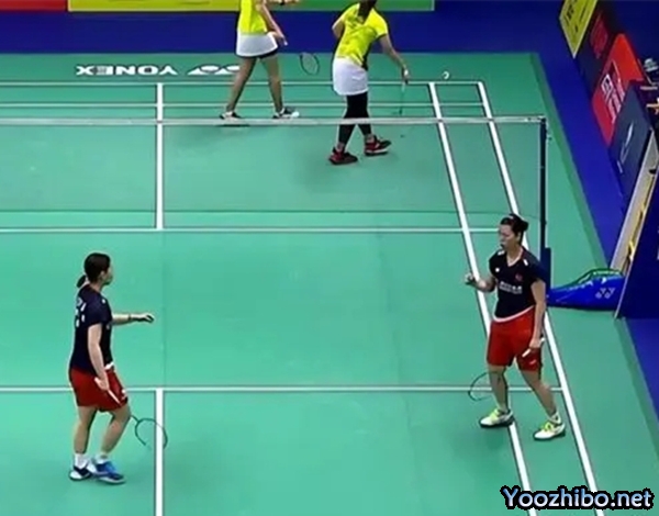 首局比赛,李怡婧/罗徐敏一上来就打的非常被动,很多回球都被拉马丹蒂提前预判到,然后快速回球得分。中国这对年轻组合很有潜力,但是临场应变能力还需要提升。对手抓住中国组合球路死板的特点连续得分,很快就以21比12拿下第一局。