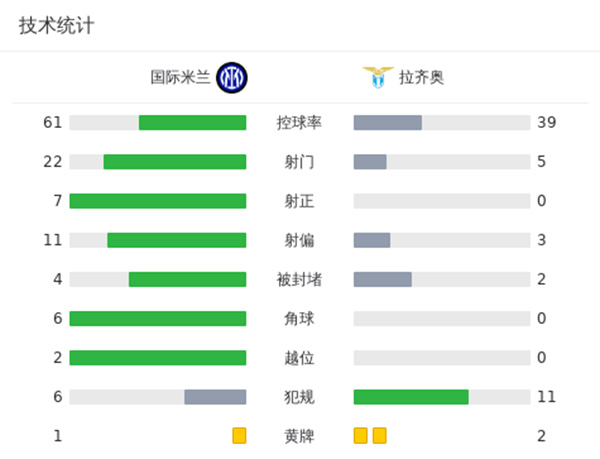 国米3-0拉齐奥 国米攻门超20脚蓝鹰全场0射正