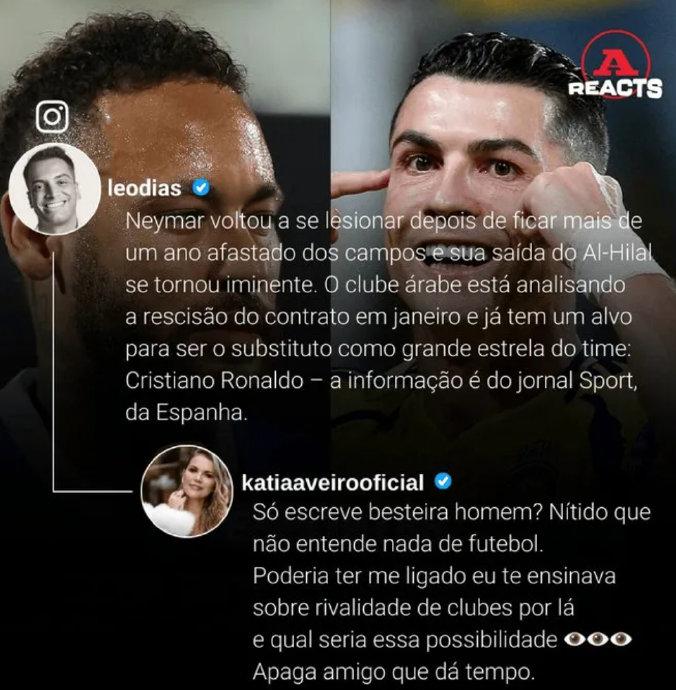 足球直播吧讯内马尔再度受伤后,有消息称利雅得新月希望引进C罗,C罗的姐姐卡蒂娅在社交媒体上驳斥了这一传言: