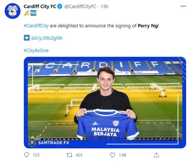 官方:卡迪夫城签下英甲华裔球员黄添喜