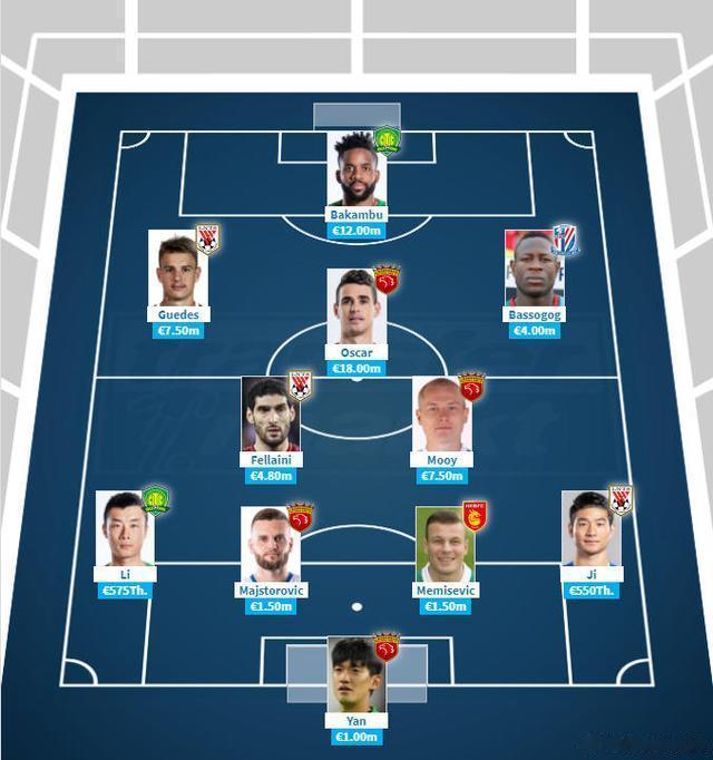 足球直播吧讯 转会市场日前更新了中超联赛球员身价,德转中国区管理员朱艺随后晒出中超联赛的最贵11人阵容,奥斯卡以1800万欧元领衔。